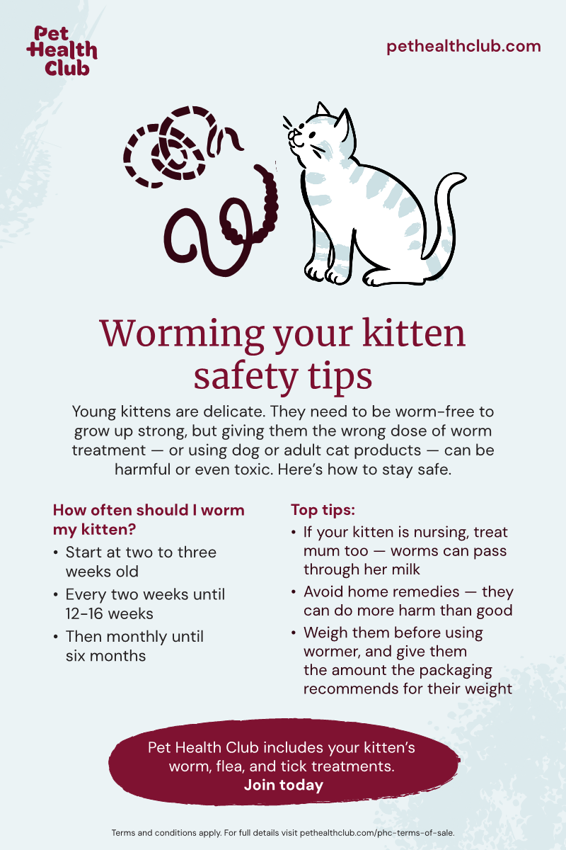 Worms in kittens are easy to miss but can cause real problems if they’re not treated. They’re more common than you might think — and even kittens kept safely indoors can pick them up from their mum, other pets, or something in the environment.